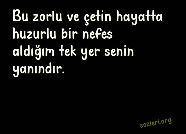 Bu zorlu ve çetin hayatta huzurlu bir nefes aldığım tek yer senin yanındır. ( Aşkıma Güzel Sözler )