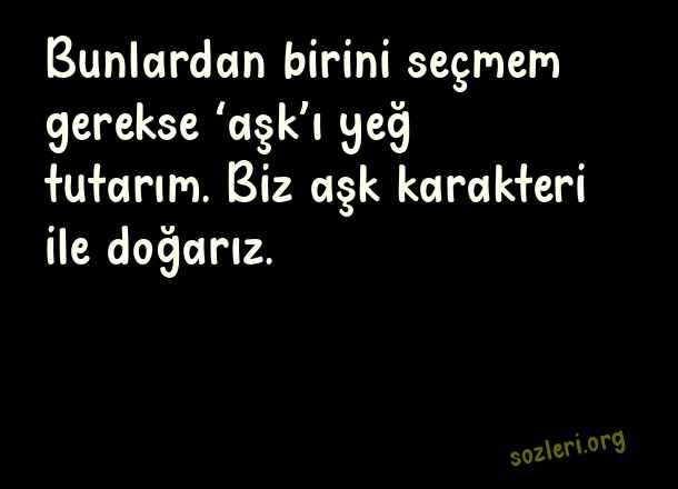 Bunlardan birini seçmem gerekse ‘aşk’ı yeğ tutarım. Biz aşk karakteri ile doğarız. ( Aşka Dair Sözler )