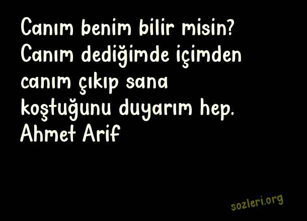 Canım benim bilir misin? Canım dediğimde içimden canım çıkıp sana koştuğunu duyarım hep. Ahmet Arif ( Aşk Konulu Sözler )