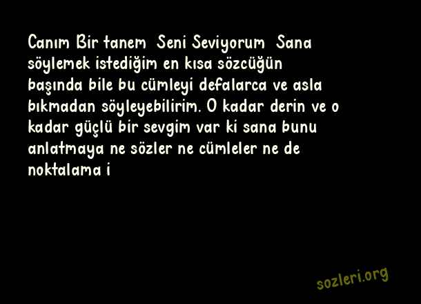 Canım Bir tanem… Seni Seviyorum… Sana söylemek istediğim en kısa sözcüğün başında bile bu cümleyi defalarca ve asla bıkmadan söyleyebilirim. O kadar derin ve o kadar güçlü bir sevgim var ki sana bunu anlatmaya ne sözler ne cümleler ne de noktalama i ( Aşk Mektupları )