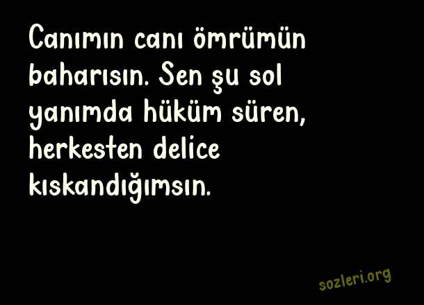 Canımın canı ömrümün baharısın. Sen şu sol yanımda hüküm süren, herkesten delice kıskandığımsın. ( Eşe Aşk )