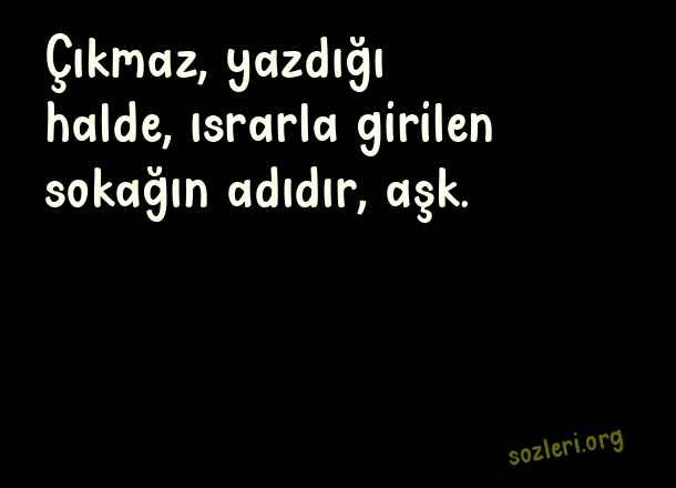 Çıkmaz, yazdığı halde, ısrarla girilen sokağın adıdır, aşk. ( Aşka Dair Güzel Sözler )