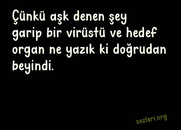 Çünkü aşk denen şey garip bir virüstü ve hedef organ ne yazık ki doğrudan beyindi. ( Garip Aşk )