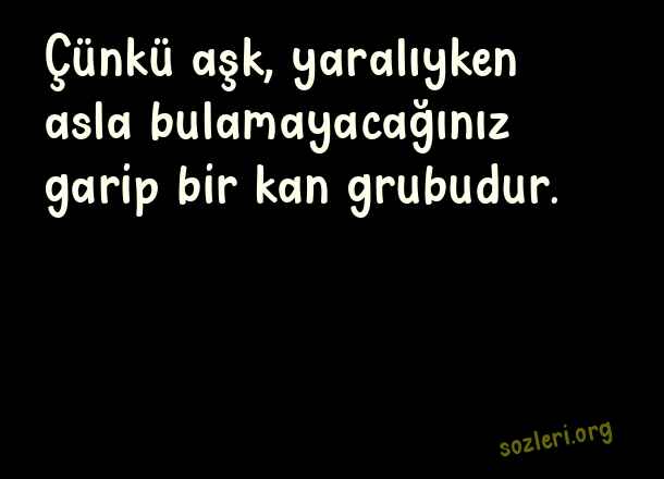 Çünkü aşk, yaralıyken asla bulamayacağınız garip bir kan grubudur. ( Garip Aşk )