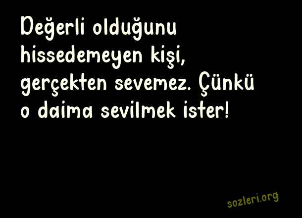 Değerli olduğunu hissedemeyen kişi, gerçekten sevemez. Çünkü o daima sevilmek ister! ( Aşkım Kapışmak )