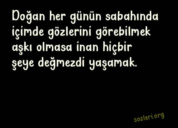 Doğan her günün sabahında içimde gözlerini görebilmek aşkı olmasa inan hiçbir şeye değmezdi yaşamak. ( En Güzel Aşk )