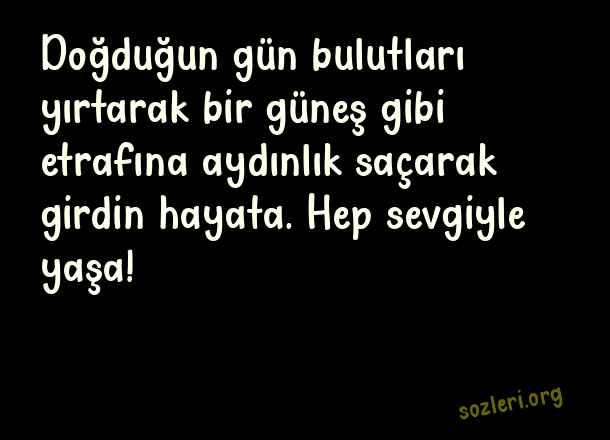 Doğduğun gün bulutları yırtarak bir güneş gibi etrafına aydınlık saçarak girdin hayata. Hep sevgiyle yaşa! ( Aşkıma Güzel Sözler )