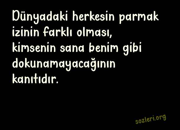 Dünyadaki herkesin parmak izinin farklı olması, kimsenin sana benim gibi dokunamayacağının kanıtıdır. ( Aşk Nedir )