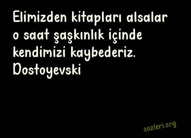 Elimizden kitapları alsalar o saat şaşkınlık içinde kendimizi kaybederiz. Dostoyevski ( Şaşkın )