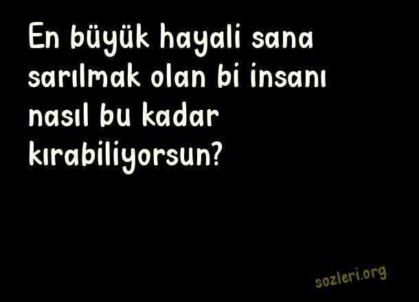 En büyük hayali - Bitmiş Aşk Sözleri .. En büyük hayali sana sarılmak olan bi insanı nasıl bu kadar kırabiliyorsun? ( Bitmiş Aşk )