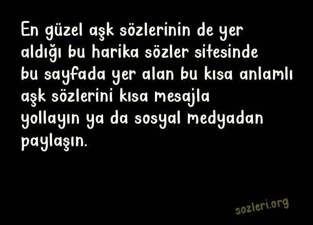 En güzel aşk sözlerinin de yer aldığı bu harika sözler sitesinde bu sayfada yer alan bu kısa anlamlı aşk sözlerini kısa mesajla yollayın ya da sosyal medyadan paylaşın. ( Kısa Aşk )