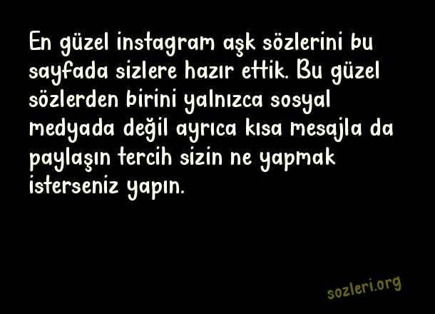 En güzel instagram aşk sözlerini bu sayfada sizlere hazır ettik. Bu güzel sözlerden birini yalnızca sosyal medyada değil ayrıca kısa mesajla da paylaşın tercih sizin ne yapmak isterseniz yapın. ( İnstagram Aşk )