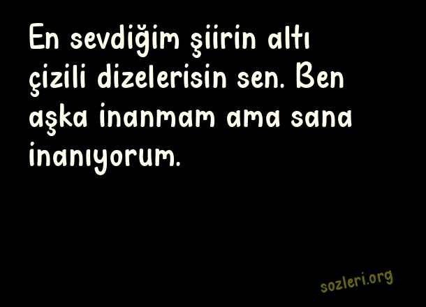 En sevdiğim şiirin altı çizili dizelerisin sen. Ben aşka inanmam ama sana inanıyorum. ( Aşkı Anlatan Sözler )