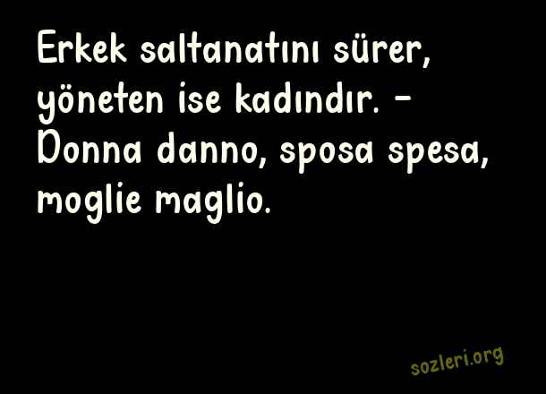 Erkek saltanatını sürer, yöneten ise kadındır. – Donna danno, sposa spesa, moglie maglio. ( İtalyanca Aşk )
