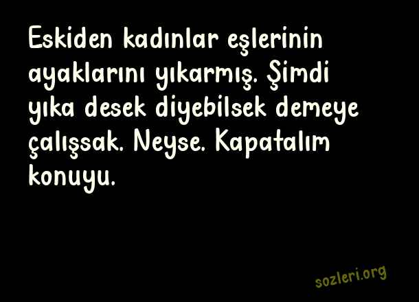 Eskiden kadınlar eşlerinin ayaklarını yıkarmış. Şimdi yıka desek diyebilsek demeye çalışsak. Neyse. Kapatalım konuyu. ( Komik Aşk )