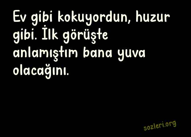 Ev gibi kokuyordun, huzur gibi. İlk görüşte anlamıştım bana yuva olacağını. ( İlk Görüşte Aşk )