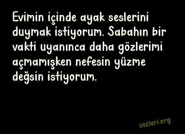 Evimin içinde ayak seslerini duymak istiyorum. Sabahın bir vakti uyanınca daha gözlerimi açmamışken nefesin yüzme değsin istiyorum. ( Aşk )