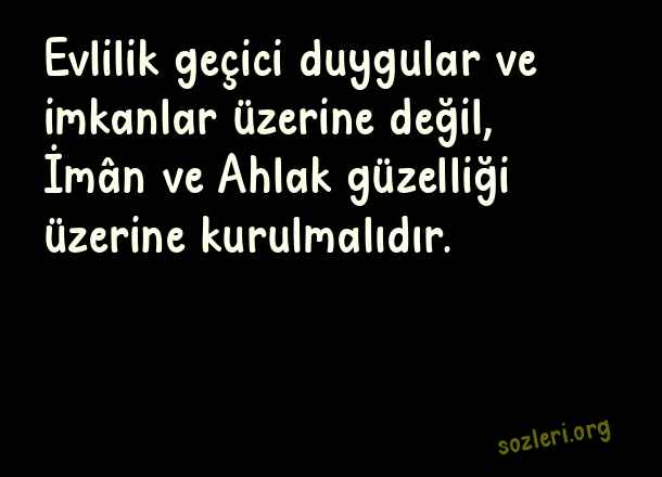 Evlilik geçici duygular ve imkanlar üzerine değil, İmân ve Ahlak güzelliği üzerine kurulmalıdır. ( Dini Aşk )