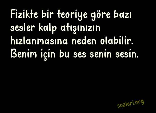 Fizikte bir teoriye göre bazı sesler kalp atışınızın hızlanmasına neden olabilir. Benim için bu ses senin sesin. Mutluluğumsun aşkım.