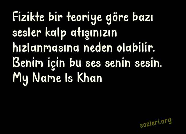 Fizikte bir teoriye göre bazı sesler kalp atışınızın hızlanmasına neden olabilir. Benim için bu ses senin sesin. My Name ls Khan ( Anlamlı Aşk )