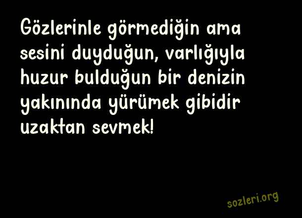 Gözlerinle görmediğin ama sesini duyduğun, varlığıyla huzur bulduğun bir denizin yakınında yürümek gibidir uzaktan sevmek! ( Etkileyici Güzel Aşk )