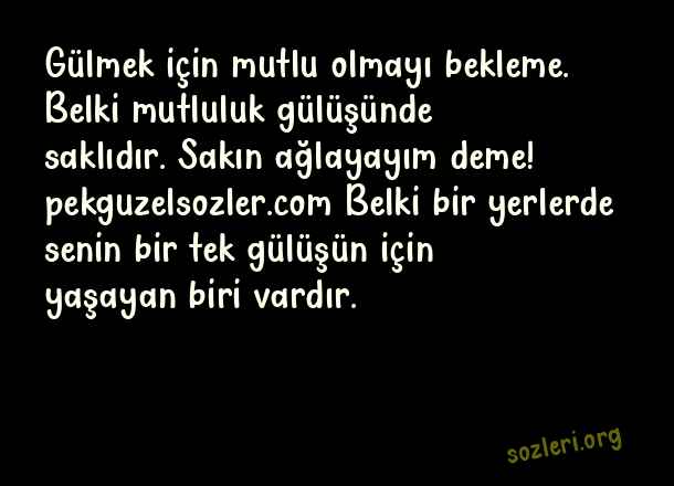Gülmek için mutlu olmayı bekleme. Belki mutluluk gülüşünde saklıdır. Sakın ağlayayım deme! Belki bir yerlerde senin bir tek gülüşün için yaşayan biri vardır. ( Derin Aşk )