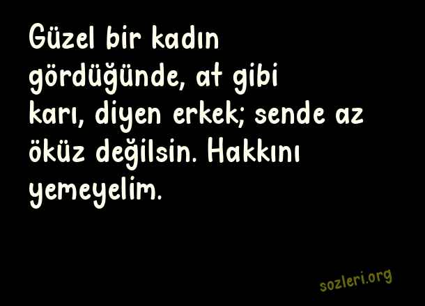 Güzel bir kadın gördüğünde, at gibi karı, diyen erkek; sende az öküz değilsin. Hakkını yemeyelim. ( Öküz Aşk )