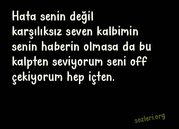 Hata senin değil karşılıksız seven kalbimin senin haberin olmasa da bu kalpten seviyorum seni off çekiyorum hep içten. ( Platonik Aşk )