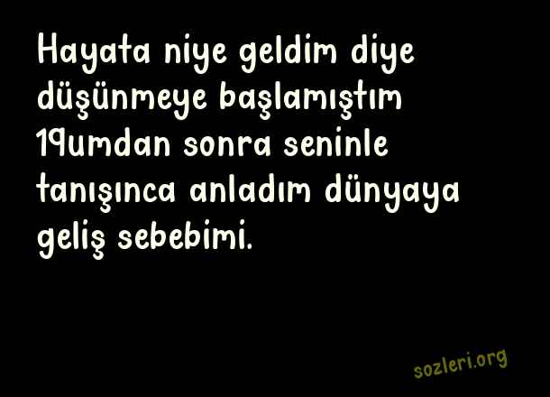 Hayata niye geldim diye düşünmeye başlamıştım 19umdan sonra seninle tanışınca anladım dünyaya geliş sebebimi. ( Kalbe Dokunan Aşk )