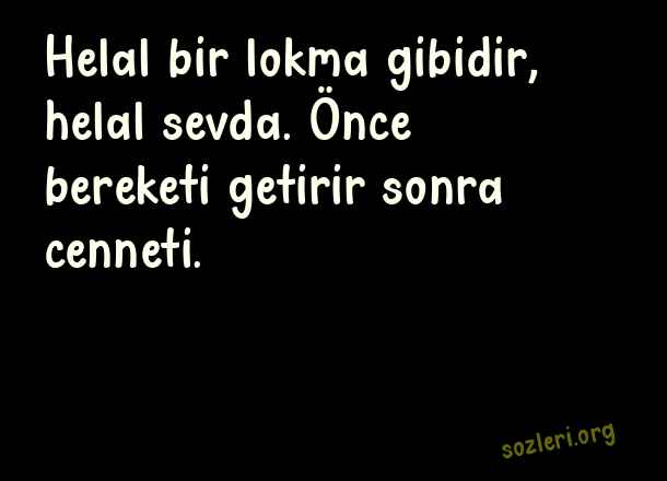 Helal bir lokma gibidir, helal sevda. Önce bereketi getirir sonra cenneti. ( Helal Aşk )