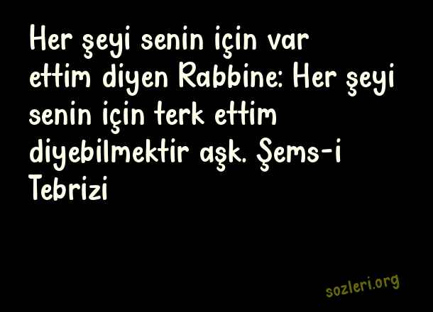 Her şeyi senin için var ettim diyen Rabbine: Her şeyi senin için terk ettim diyebilmektir aşk. Şems-i Tebrizi ( Dini Aşk )