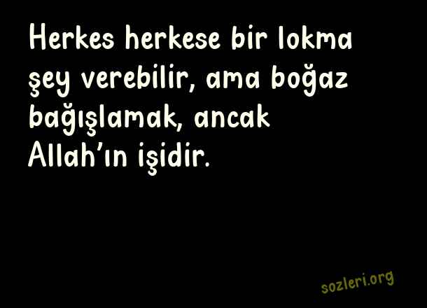 Herkes herkese bir lokma şey verebilir, ama boğaz bağışlamak, ancak Allah’ın işidir. ( Allah Aşkı )