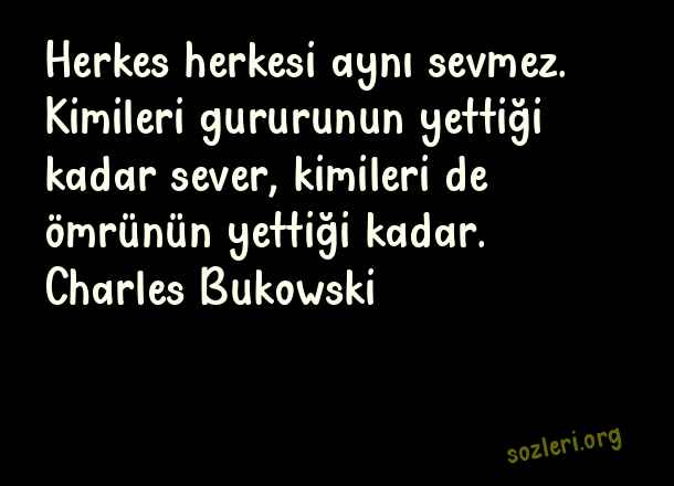 Herkes herkesi aynı sevmez. Kimileri gururunun yettiği kadar sever, kimileri de ömrünün yettiği kadar. Charles Bukowski ( Sonsuz Aşk )