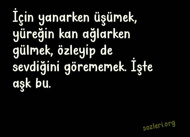 İçin yanarken üşümek, yüreğin kan ağlarken gülmek, özleyip de sevdiğini görememek. İşte aşk bu. ( Klasik Aşk )