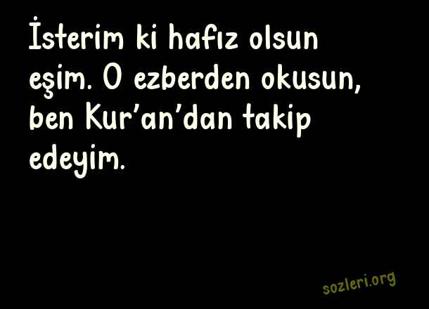 İsterim ki hafız olsun eşim. O ezberden okusun, ben Kur’an’dan takip edeyim. ( Helal Aşk )