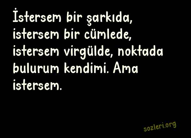 İstersem bir şarkıda, istersem bir cümlede, istersem virgülde, noktada bulurum kendimi. Ama istersem. ( Aşkım Kapışmak )
