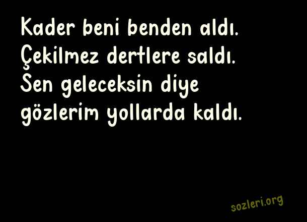 Kader beni benden aldı. Çekilmez dertlere saldı. Sen geleceksin diye gözlerim yollarda kaldı. ( Arabesk Aşk )