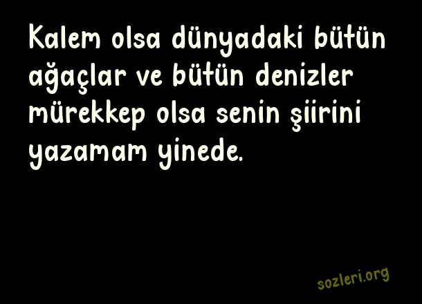 Kalem olsa dünyadaki bütün ağaçlar ve bütün denizler mürekkep olsa senin şiirini yazamam yinede. ( Etkileyici Güzel Aşk )