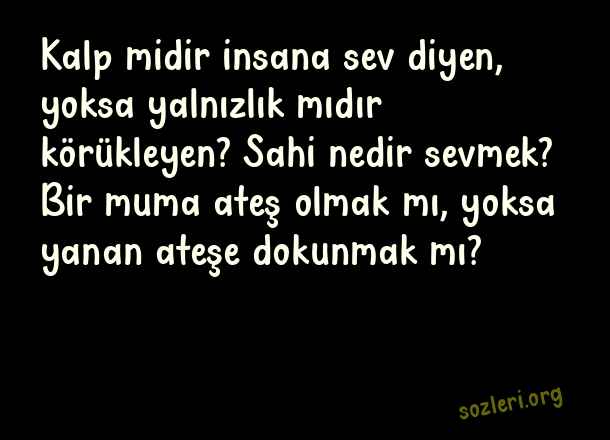 Kalp midir insana sev diyen, yoksa yalnızlık mıdır körükleyen? Sahi nedir sevmek? Bir muma ateş olmak mı, yoksa yanan ateşe dokunmak mı? ( En İyi 50 Aşk Sözü )