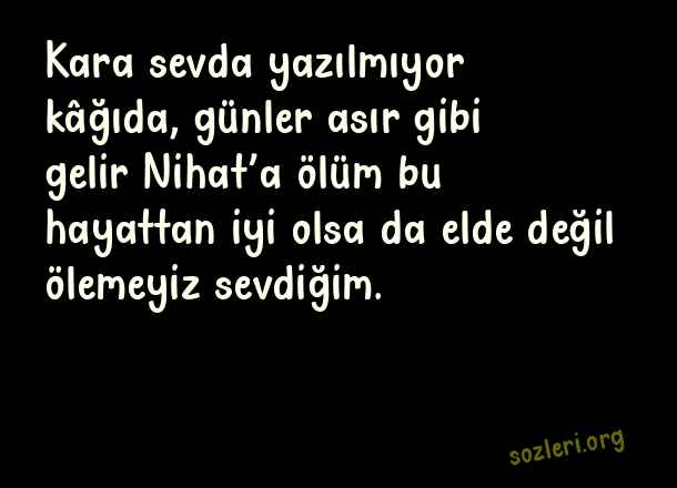 Kara sevda yazılmıyor kâğıda, günler asır gibi gelir Nihat’a ölüm bu hayattan iyi olsa da elde değil ölemeyiz sevdiğim. ( Arabesk Aşk )