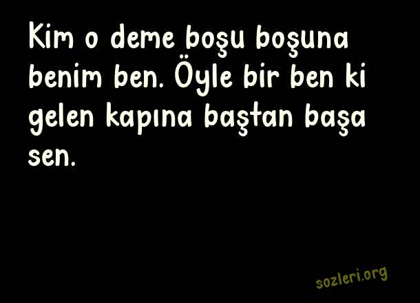 Kim o deme - En Güzel Aşk Sözleri .. Kim o deme boşu boşuna benim ben. Öyle bir ben ki gelen kapına baştan başa sen. ( En Güzel Aşk )