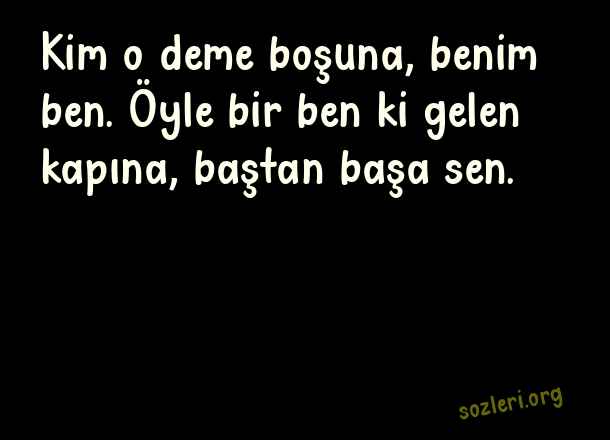 Kim o deme - Anonim Aşk Sözleri .. Kim o deme boşuna, benim ben. Öyle bir ben ki gelen kapına, baştan başa sen. ( Anonim Aşk )