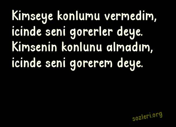 Kimseye konlumu vermedim, icinde seni gorerler deye. Kimsenin konlunu almadım, icinde seni gorerem deye. ( Azerice Aşk )