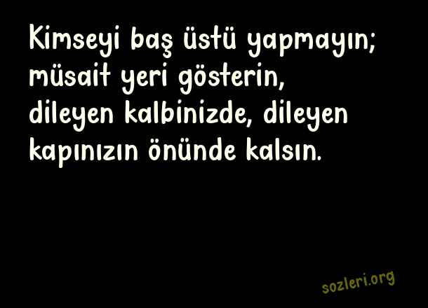 Kimseyi baş üstü yapmayın; müsait yeri gösterin, dileyen kalbinizde, dileyen kapınızın önünde kalsın. ( Aşkım Kapışmak )