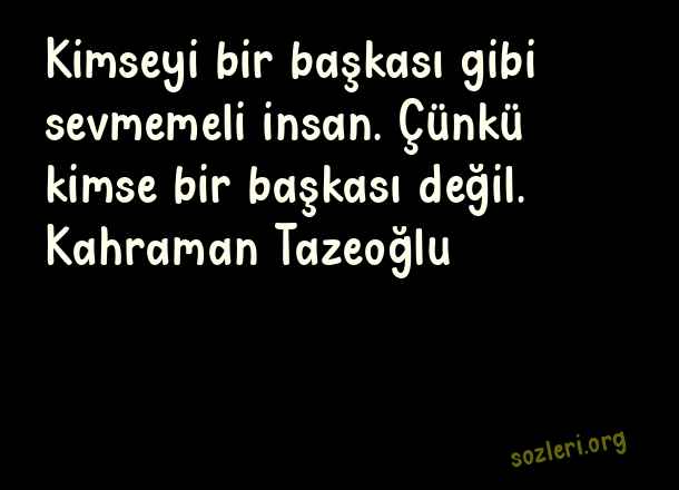 Kimseyi bir başkası gibi sevmemeli insan. Çünkü kimse bir başkası değil. Kahraman Tazeoğlu ( Felsefi Aşk )