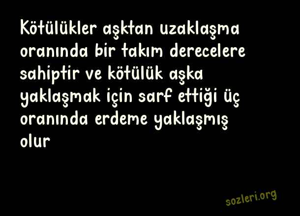 Kötülükler aşktan uzaklaşma oranında bir takım derecelere sahiptir ve kötülük aşka yaklaşmak için sarf ettiği üç oranında erdeme yaklaşmış olur… ( Aşka Dair Sözler )