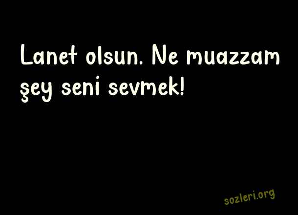 Seni sevdiğim güne lanet olsun, sana verdiğim değere yazıklar olsun… Seni tutan ellerim kırılsın, seni seven kalbim dursun, seni gören gözlerim kör olsun… En önemlisi bu hayatta seni tanıdım ya bu hayata lanet olsun… Senden nefret ediyor