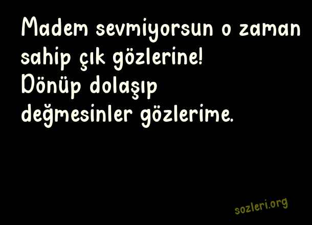Madem sevmiyorsun o zaman sahip çık gözlerine! Dönüp dolaşıp değmesinler gözlerime. ( En İyi 50 Aşk Sözü )