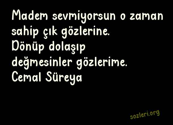 Madem sevmiyorsun o zaman sahip çık gözlerine. Dönüp dolaşıp değmesinler gözlerime. Cemal Süreya ( Yazarlardan Aşk )