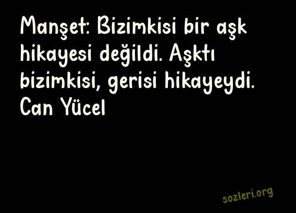 Manşet: Bizimkisi bir aşk hikayesi değildi. Aşktı bizimkisi, gerisi hikayeydi. Can Yücel ( Etkileyici Güzel Aşk )
